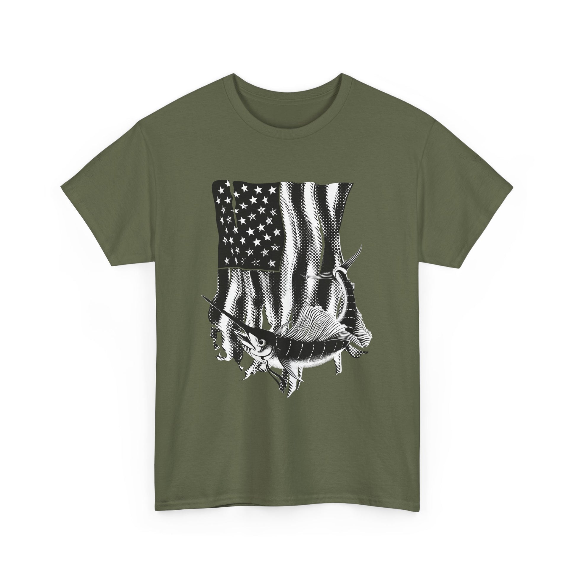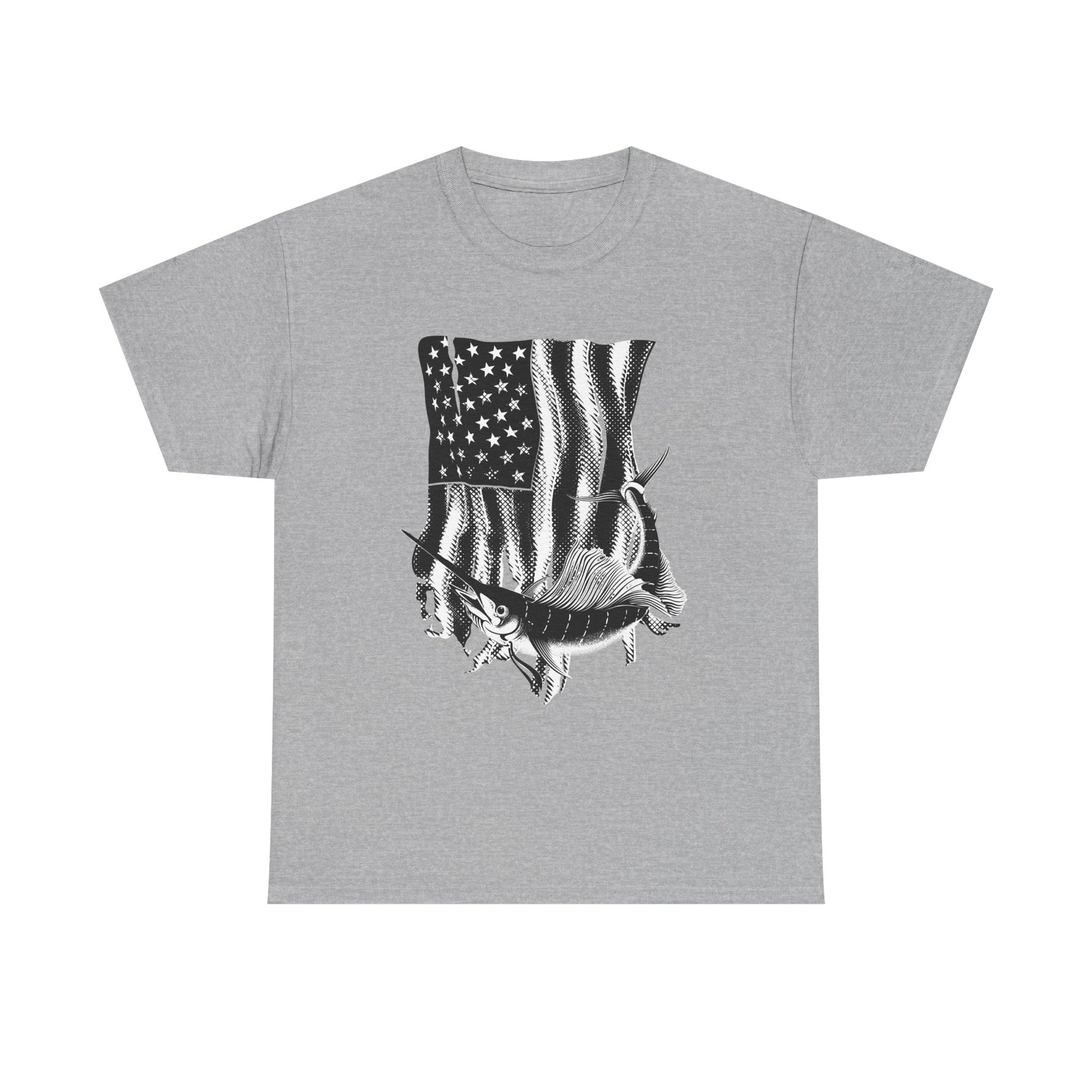 Patriotic Fish Graphic Tee, Unisex Cotton Shirt, Americana Apparel, Fishing Lover Gift, Fourth of July Outfit